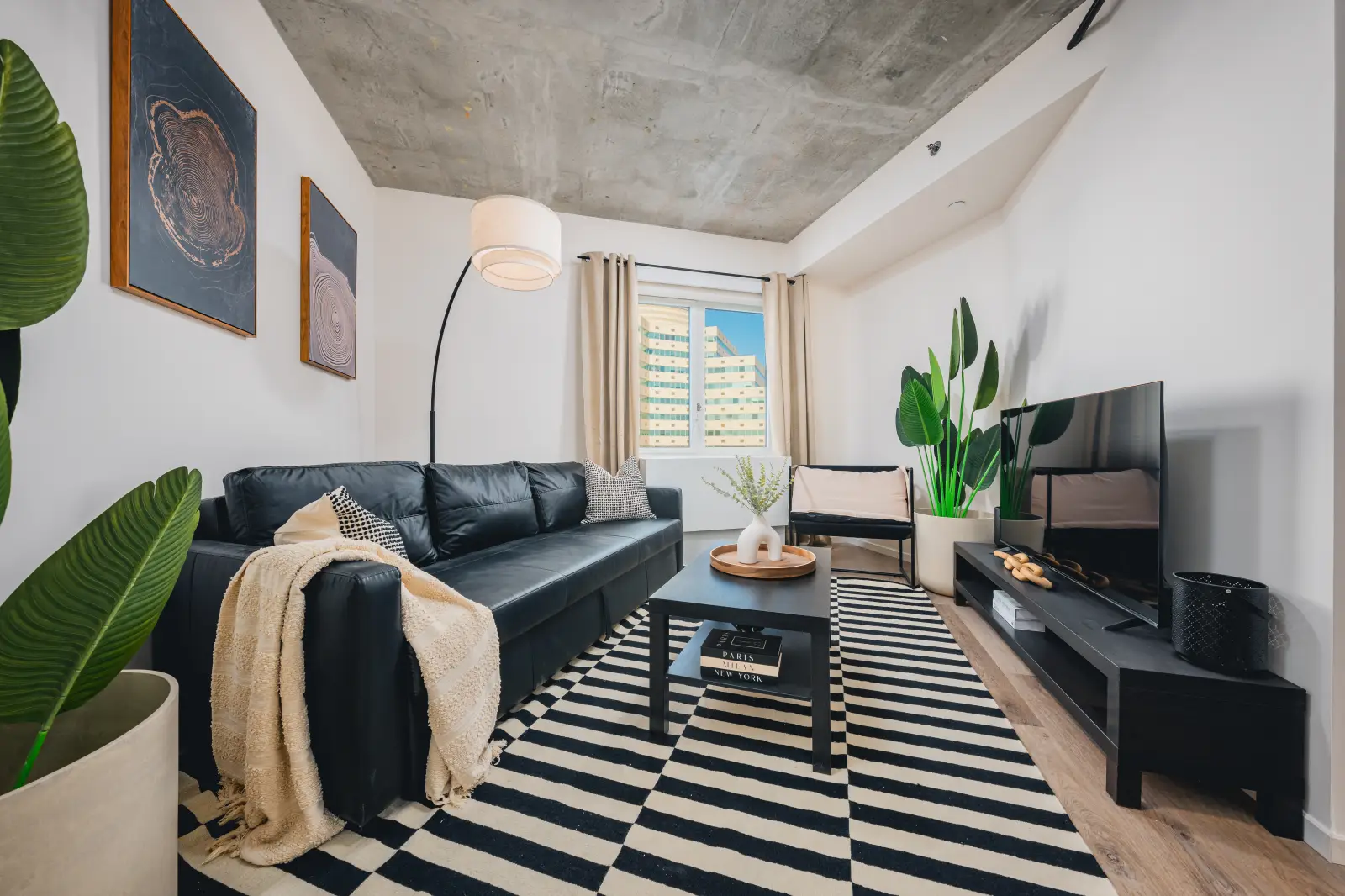 Explore our thoughtfully designed interiors with quartz countertops, stainless steel appliances, custom flooring, and beautiful city views.